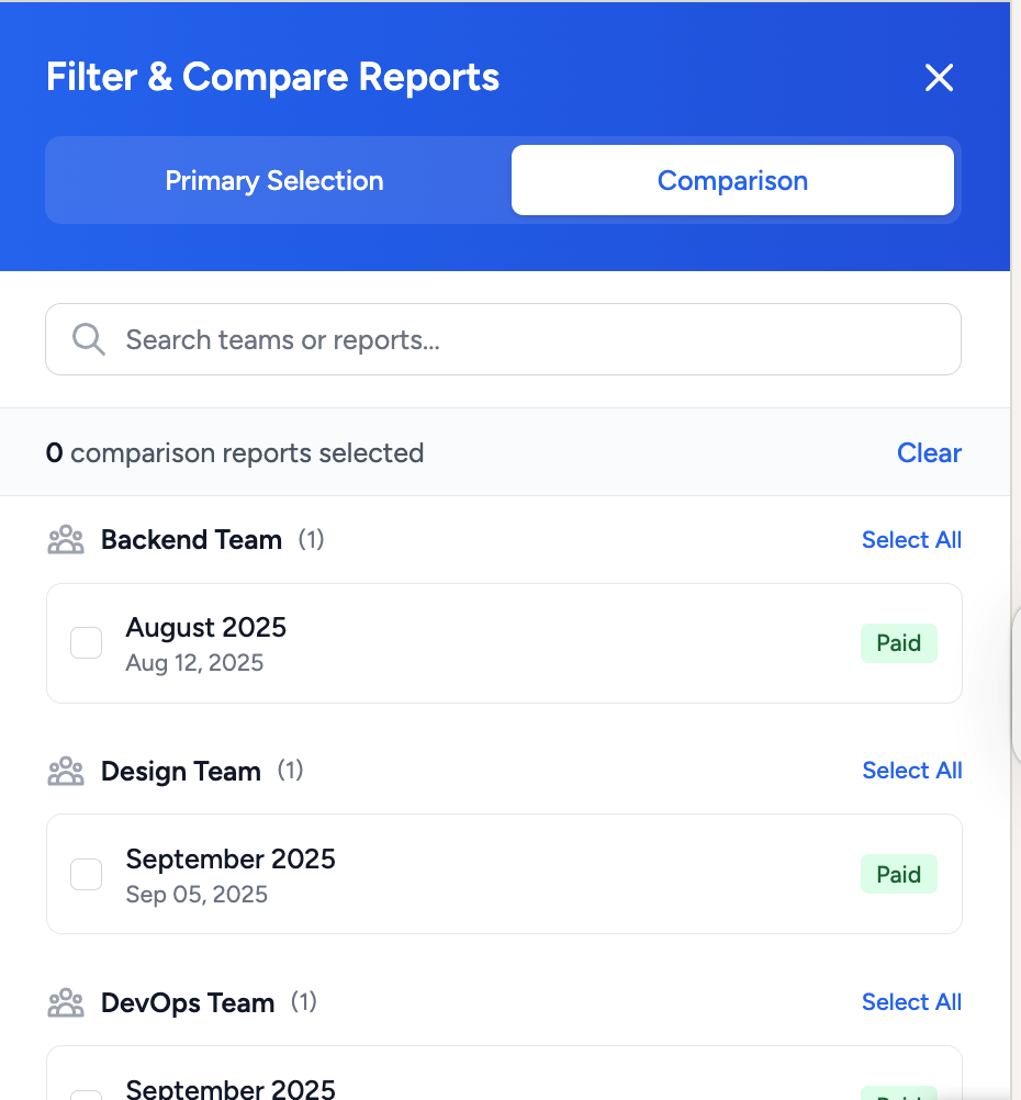 Whether you have ten teams or hundreds, the Multi-Team Report is built for scale. Fast, reliable and designed for complex organisational structures with: