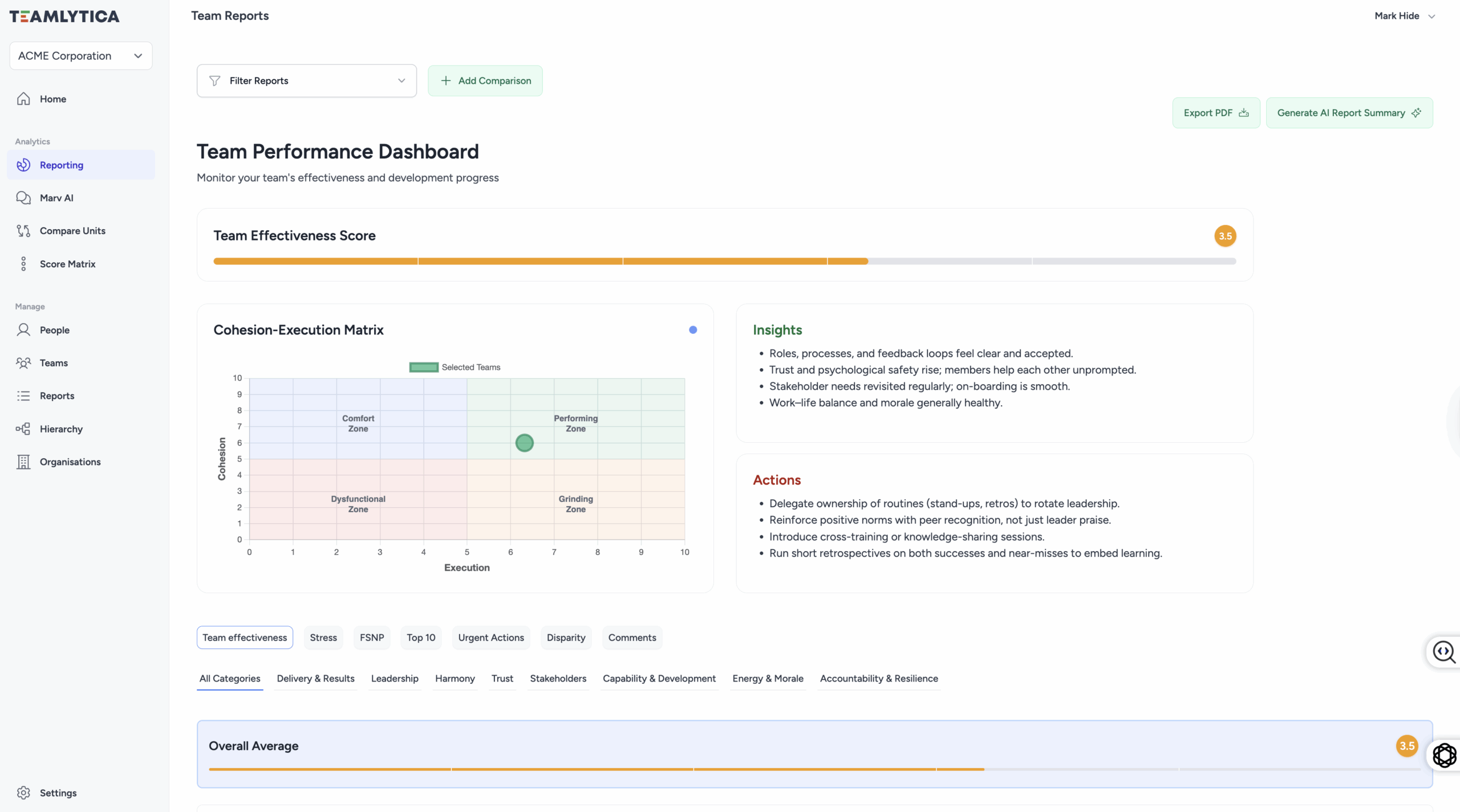 TeamLytica blends quantitative data with real team commentary to give a balanced picture of how people feel and perform.